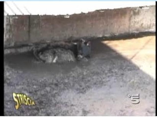 La strutturata infatti non è adatta per contenere tutti quegli animali, inoltre in circa due mesi, il letame e liquame prodotto non è mai stato pulito ne smaltito. Facile immagginare le condizioni in cui vivono questi animali. In soli due giorni gli operatori dell' ANPANA dicono di aver visto morire 2 mucche e 2 vitellini mentre una vacca ha partorito uno splendido vitello in un morbido materasso fatto di circa 40 centimetri di liquame. Il 50 % degli animali è sfinito, seduto a terra senza la forza di reagire, un toro sdraiato sembra quasi pregare, guarda con occhi che sembrano dire "ti prego mangiami ma lascia che tutto questo finisca".